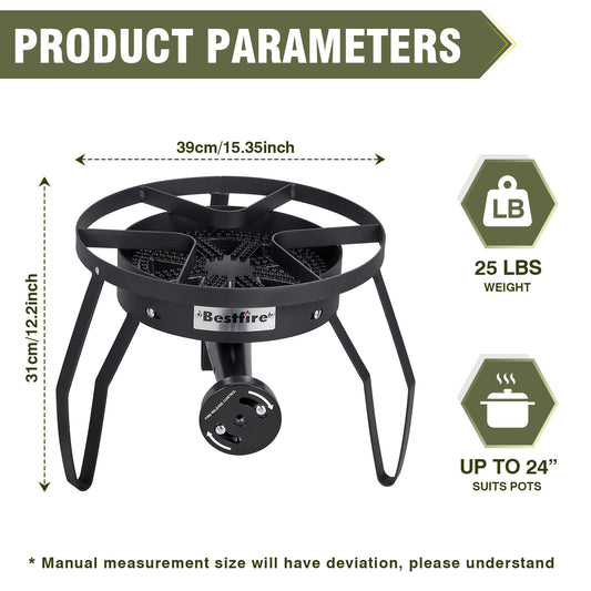 16 英寸单丙烷燃烧器露营炉,带钢编织软管,200,000 BTU,适用于煎炸、露营、家庭酿造和煎炸火鸡