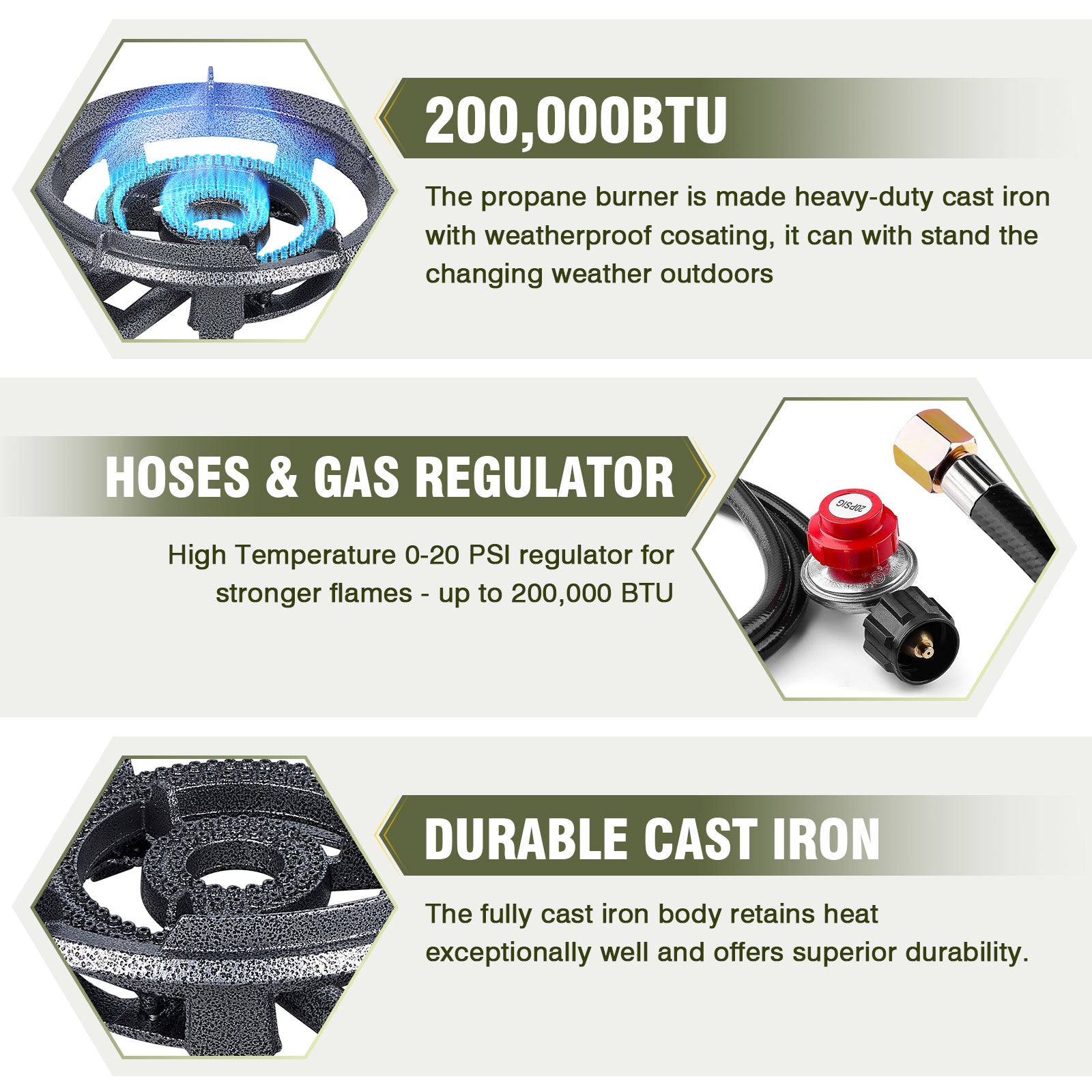 - 🔥【优质材料】铸铁单丙烷炒锅燃烧器由重型铸铁制成,非常坚固。这款丙烷炒锅燃烧器结构简单,可轻松清洁,省去很多麻烦和时间。
