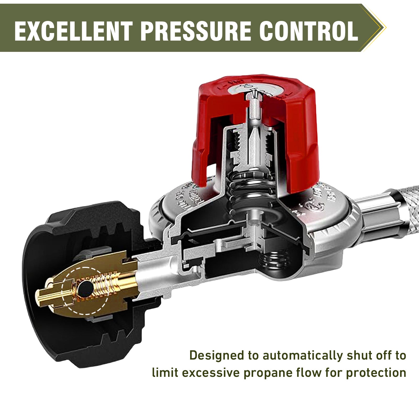 - 高效调节:QCC1 丙烷调节器配有精确的压力表,可在 0-20 PSI 的压力范围内平稳运行,具有广泛的压力调节范围,适用于各种应用,确保用户能够精细控制丙烷设备的热量输出
